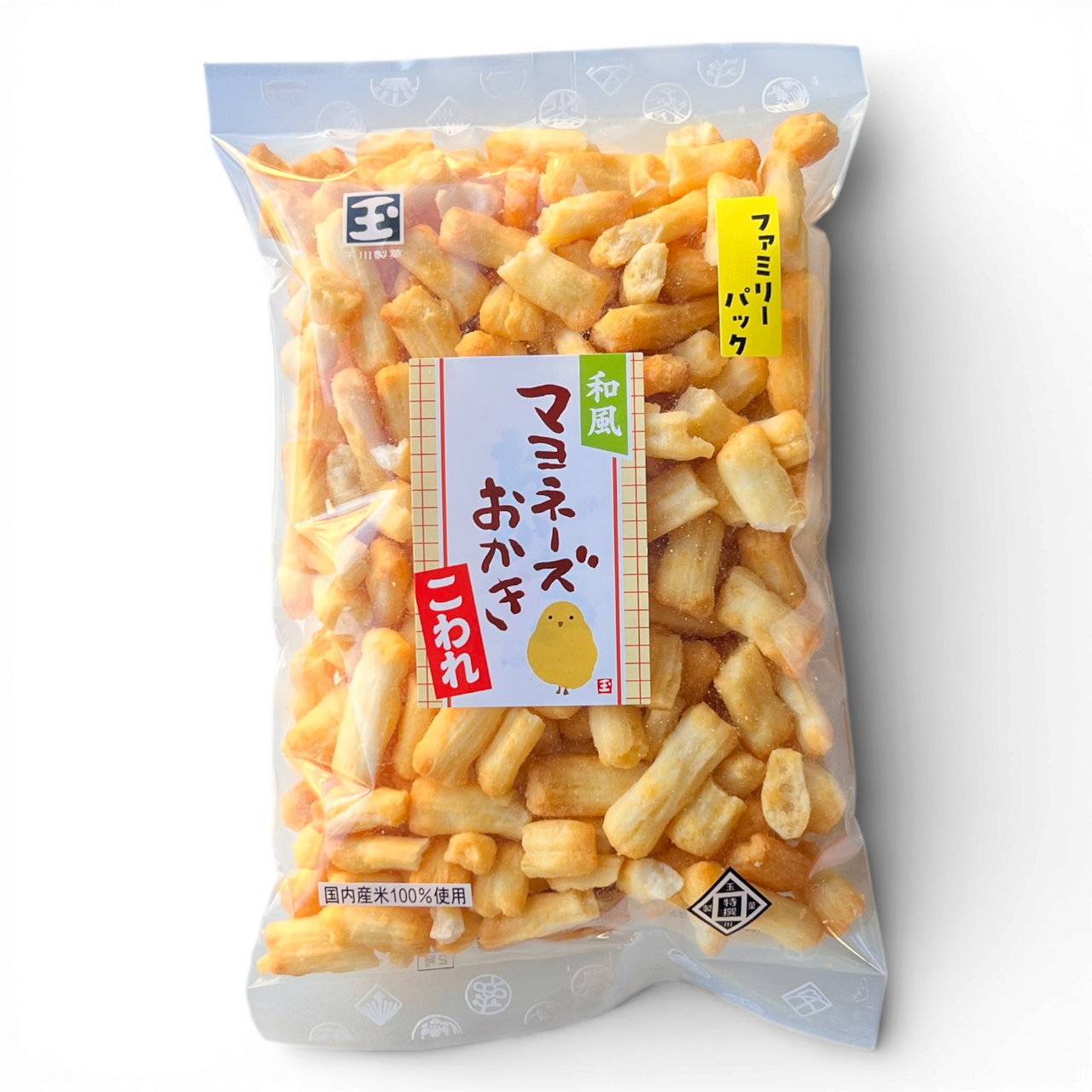 皆様に愛され、販売開始より100万個突破!サクサクに焼き上げたおかきに、まろやかなマヨネーズ味を付けた、発売より多くのお客様にご好評いただいている和風マヨネーズに、大満足300gのコワレパックが数量限定で新登場!